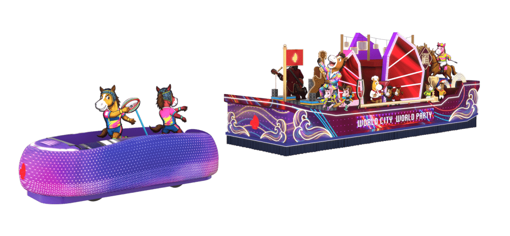 Nhân dịp Tết Bính Ngọ, xe hoa của Tổng cục Du lịch Hồng Kông với chủ đề “World City, World Party” hứa hẹn mang đến bất ngờ cho khán giả với cặp xe hoa đôi đồng bộ. Xe hoa chính sẽ quy tụ nhiều linh vật ngựa con trong những bộ trang phục lấy cảm hứng từ các sự kiện lớn, trong khi xe hoa còn lại tái hiện sân vận động chính của Công viên Thể thao Kai Tak ngay tại Tiêm Sa Chủy, qua đó khẳng định lợi thế của Hồng Kông với vị thế “Thủ phủ Siêu sự kiện”.